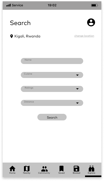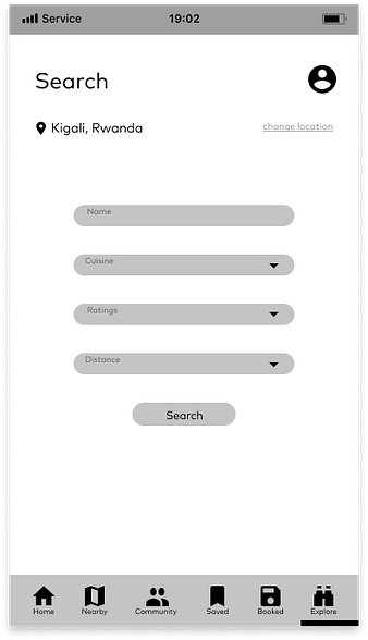 The search option in the navigation bar allows users to filter out restaurants based on ratings, kind of African cuisine, name of the restaurant, and distance.