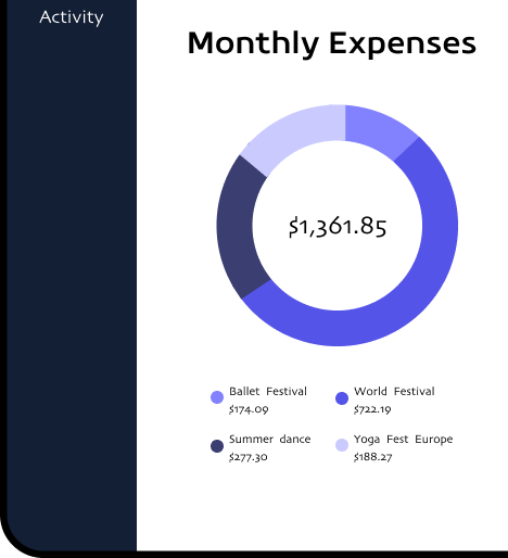 Solution: I redesigned the doughnut chart and replaced the line chart with a calendar. The doughnut chart now gives users a cumulative of their monthly expenses. It also shows users how they spent their money and which event they spent it on.