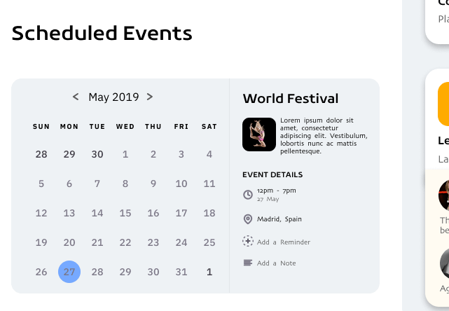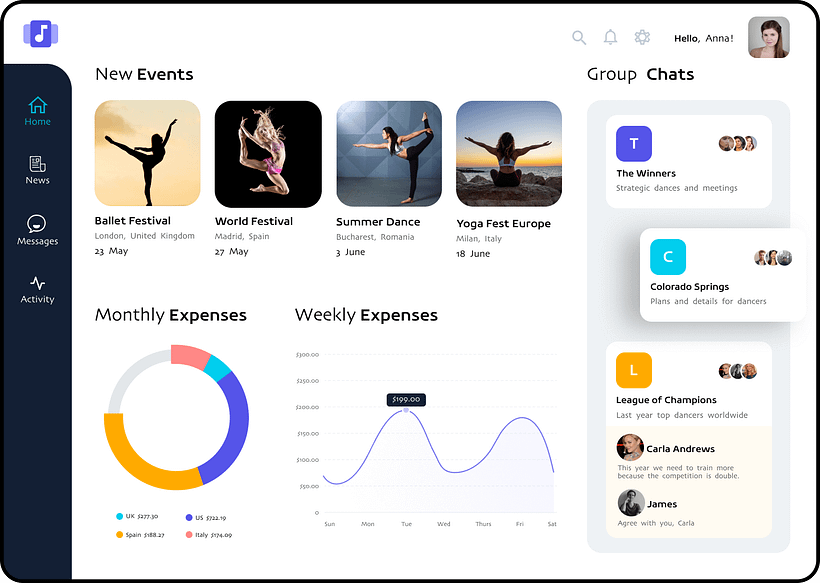 The original dashboard design is for an event SaaS platform. It aims to help users book, manage, and discover events according to their preferences. It also serves as a psychosocial system where users can interact with other users having similar interests.